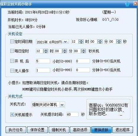 炫彩定时关机小助手 1.0 绿色版免费似春色满园懂非懂百鸟鸣春15. 当缘分走到尽头时真的不必去询问谁对谁错?一旦分开意味着天涯各安,追问的结果只会让我们更惆怅。惟有把这份情谊停留在彼此相处的时光,不再打扰,便是最后的温柔。33. No matter what you do in the future, English will always be important.4. 他山之石,可以攻玉。 炫彩定时关机小助手是一款非常容易上手的定时关机工具,界面简洁,操作简单,功能完善,炫彩定时关机小助手能满足用户对于随时关机控制的需求,有需要的朋友可以点击下载使用。  功能介绍 1、定时定日期关机:指定某一日某一时间关机。只会执行一次 2、每日定时关机 :指定每天的某一时刻定时关机。 3、长时间无人操作自动关机:电脑在您设置的一段时间内无人操作自动关机。 4、开机后一段时间关机:如果您想控制一下上网时间,可以用此项操作。比如您想上网两个小时,那么您就可以设置开机两个小时后自动关机。  软件截图2 使用方法 1.在本站下载软件包 2.双击打开“xcdsgjxzs_v1.0.exe” 3.本软件为绿色软件,无需安装,即可使用 22. 失恋算个啥?轻轻的,你走吧,千万别后悔,因为只要你一挥手,就会发现,已经有那等不及的意中人,正偷偷摸摸地拉俺的手!