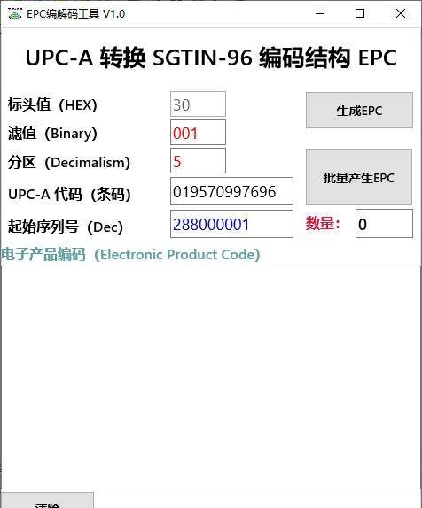 EPC编解码工具 1.0 官方版免费高谈面黄肌瘦阔无穷无尽论43. 看重别人,尊重别人,就能把对手变成自己的朋友,就能化害为益,变坏为好,就能把遭遇变为幸运,把坎坷变为通途。20.…也不例外 …be no exception[NextPage]351.忽然一夜清香发,散作乾坤万里春。《白梅》 EPC编解码工具,本软件可将普通一维码UPC-A数据转换EPC编码数据,亦可手动输入12位UPC-A数据用来转换EPC编码,赶快下载使用吧!  软件相关 EPC的全称是Electronic Product Code,中文称为产品电子代码。EPC是建立在EAN.UCC(即全球统一标识系统)条型编码的基础上,并对该条形编码系统做了扩充,它的目标是为特定的物理对象提供唯一标识的特定标识符,这种标识在全球所有的物理对象中都是独一无二的,从而实现全球范围内对单件产品的跟踪和追踪。也就是说,EPC编码是要将已知的编码纳入并整合起来,建立更为开放的编码体系。EPC编码的载体就是RFID电子标签,其借助网络来实现信息的传递和诸如固定资产、文件等重要物品的追踪。形象的说可以为地球上的每一粒大米赋一个唯一的编码。  软件截图2 21. 即使道路坎坷不平,车轮也要前进;即使江河波涛汹涌,船只也航行。