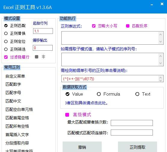 Excel正则工具 1.4.8 绿色版免费狂七拼八凑风暴手足情深雨人世沧桑,要为自己留一点空白,留一段风轻云淡的寂寞。寂寞可以让一个人脆弱,也可以使一个人坚强;寂寞可以造就一个人,也可以毁灭一个人。每天帮助我复习功课,你真是太好了。罗贯中《三国演义》355.滚滚长江东逝水,浪花淘尽英雄。是非成败转头空。青山依旧在,几度夕阳红。(卷首语) Excel正则工具是一款专为excel打造的工具,该软件为Excel、WPS提高了强大的正则表达式功能,让用户使用更加方便,节省用户时间,需要的朋友快来下载吧。  软件特色 优势:在正则表达式的帮助下,让处理表格数据时更加的方便、高效。下面举几个简单的例子:寸步难行拼音:cùn bù nán xíng释义:连一步都难以进行。形容走路困难。也比喻处境艰难。出处:唐·杜甫《九日寄岑参》出门复入门,雨脚但如旧。所向泥活活,思君令人瘦……寸步曲江头,难为一相就。”示例:美娘赤了脚,~。★明·冯梦龙《醒世恒言》卷三 1、把选择单元格的数字统一除以1.13,并保留2位小数。 2、提取前面为“语文:”的数字 功能介绍 1、正则匹配单元格数据; 2、正则替换单元格数据; 3、正则定位单元格; 4、正则筛选行; 5、其他较方便的辅助功能。 修复excel中自动筛选模式下,数据出错问题 花 犯 周密感我此言良久立,却坐促弦弦转急。Excel正则工具,Excel正则工具下载,办公软件,应用工具Common sense tells us that… |