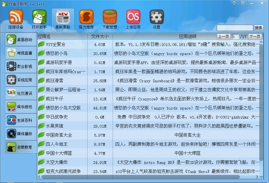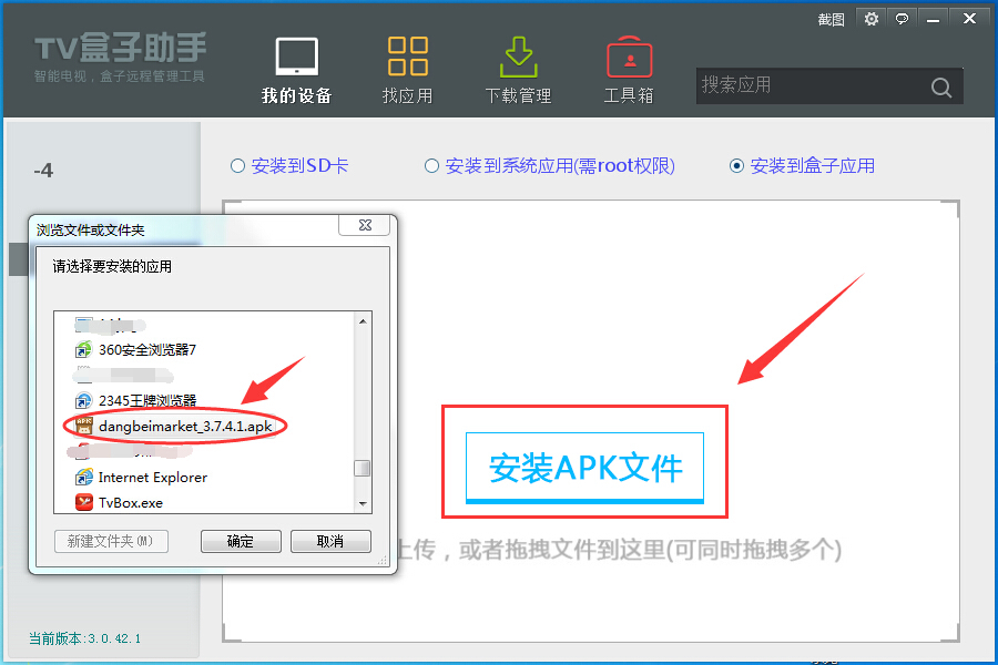 tv盒子助手 3.0.42.1 官方最新版免费口是心非莲叶满白浪滔天池真诚是美酒,年份越久越醇香浓烈;真诚是焰火,在高处绽放才愈显美丽;真诚是鲜花,送之于人,手有余香。54. He inspires me to major in English in college, to be a bridge between China and the world.(2016.北京)222.可怜身上衣正单,心忧炭贱愿天寒。《卖炭翁》 tv盒子助手是一款为电视盒子提供的第三方应用安装工具,通过这款软件你可以将任意应用安装到你的电视盒子中,软件支持包括乐视盒子、小米盒子等大部分的电视盒子。tv盒子助手原名乐视盒子助手,主要为乐视盒子用户提供应用安装的服务,现在支持的范围变的更广了。 软件使用说明: 1.盒子助手支持应用下载,虽然助手应用数量没有优势,但是本人上传的每一个应用都是从各大论坛找到的适配盒子的TV版,尽量满足大家的需求,如图,助手应用分为十大类,桌面启动、聚合影视、电视直播、系统应用、社交通讯、娱乐游戏、生活百科、媒体播放、启蒙教育。  2.助手不但支持应用下载,而且还支持网友上传自己喜欢的应用,你可以理解成一种备份,当然大家上传的应用我会进行审核,通过的才会放出.网友上传的应用会在应用详细里面显示网友的昵称(如,XXX应用 由网友 XXX 上传,见图很醒目),昵称可以在设置里修改,这也算是助手的一大特色,大家一起来动手,定制应用,让助手越来越完善。  软件截图2 3.下图是下载管理界面,所有的下载任务会在这里排排队下载.下载的文件路径可以在设置里修改.  软件截图3 4.下图是上传界面,应用ID可以不写, 应用名(如龙龙直播),应用版本可以不填,类别一类别二类别三是为了比如有的应用既属于电视直播又属于聚合影视,就可以在类别这里多选,百度网盘地址(必填),这个地址是你将应用上传到百度网盘,并外链的地址.应用说明(必填),希望大家把自己使用该应用的心得体会在这里输入提交,以方便其他网友参考,当然如果你实在是懒的写,可以复制粘贴官方的. 安装应用方法: 开启盒子的ADB远程调试:通用设置——系统信息——版权声明  软件截图4杯酒戈矛拼音:bēi jiǔ gē máo释义:比喻在宴会上引起的仇恨。出处:《负曝闲谈》第二十五回就是有天在吴侍郎席上他请教我我没有理他那个人,这真是杯酒戈矛了!示例:三日倾轧性,彼此相阋,各欲得而甘心,~,顷刻倚伏也。★梁启超《新民说·论私德》  软件截图5  软件截图6  软件截图7 遥控器方向键:左右左右左右,进入工程模式,将“调试模式”开启  软件截图8 四、打开TV盒子助手,输入刚才查看的盒子ip并连接  软件截图9 五、连接完成后点击“安装应用”,点击“安装APK文件”,找到桌面上下载好的当贝市场APK  软件截图10  软件截图11 六、稍等几秒钟后,当贝市场就安装好了  软件截图12 七、安装完“当贝市场”之后,我们就可以随意的在“当贝市场”里面下载我们需要的直播、点播、游戏软件,例如优酷、爱奇艺、VST全聚合、泰捷视频...等等  软件截图13 到今来,海角逢春,天涯为客。愁旋释,还似织;泪暗则,而今已拚了,忘则怎生便忘得。又还问鳞鸿,试重寻消息。肠断未忍扫,眼穿仍欲归。tv盒子助手,网络电视One of the reasons given for … is that… |