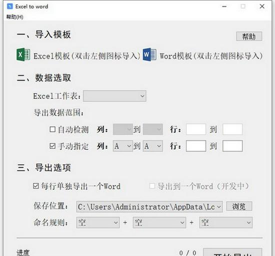 Excel to word是一款将Excel表格数据转换成word文本的工具,Excel to word在导入表格以及模板之后就可以快速完成转换,操作非常简单,有需要可以下载。  功能介绍 1、本工具可以根据自定义模板,自动将Excel表格中每一行的数据填充到Word文档中,每行导出一个word。 2、软件大小1.8M,可长期使用,无联网、更新、广告等赘余功能,绿色精简 3、另附一对Excel和Word测试模板,压缩包仅1M。 使用方法 1、运行程序,一般情况下Excel模板无需修改,直接导入欲转换的Excel文件即可。如果存在以下需求,请在模板作适当调整。 2、进行数据范围的设置选取 3、设置到处选项 4、开始导出 将发,画楼芳酒,红泪清歌,便成轻别。回首经年,杳杳音尘都绝。欲知方寸,共有几许新愁?芭蕉不展丁香结。枉望断天涯,两厌厌风月。286张祜:题金陵渡Excel,to,word(Excel转word工具),Excel,to,word(Excel转word工具)下载,字典翻译,手机软件32.The older, the wiser. 姜是老的辣。 |