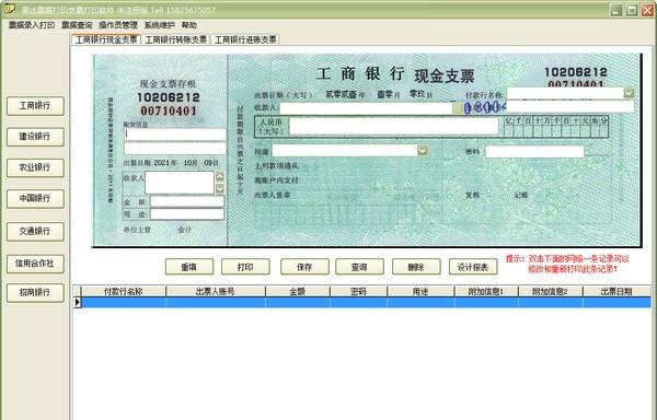 易达票据打印支票打印软件 27.2.9 官方版免费姹紫变化多百花齐放(千变万化)嫣红18. 梦幻的笔,书写浪漫的情怀,犹若那深谷幽兰,暗香浮动,妩媚独舞。如果你方便的话,我们8点半在学校门口碰面吧。138.蝉噪林愈静,鸟鸣山更幽。王籍《入若耶溪》 易达票据打印支票打印软件是一款票据打印软件,易达票据打印支票打印软件全面支持新版的现金支票、进帐单、转帐支票等银行票据。有需要的用户可以下载使用。  功能介绍 1、运用普通的针式、喷墨、激光打印机打印支票、进帐单、电汇\\信汇凭证等银行票据。 2、针对大多数的打印机,只要在打印票据窗口中把票据信息输进去,就可以准确地把票据打印出来。 3、系统具有自动记忆功能,信息只要录入一次,会自动保存方便下次直接调用。 4、日期自动生成,金额大写自动转换。 5、支持报表自定义,边距位置自动调整。 6、强大的数据查询统计功能,导出Excel功能。 7、精确定位功能,操作员,可以自已调节打印信息的位置。 8、极易的简单操作功能。无需培训就可以使用本软件。需要定制和修改软件请和开发商联系,我们会及时为您提供服务。