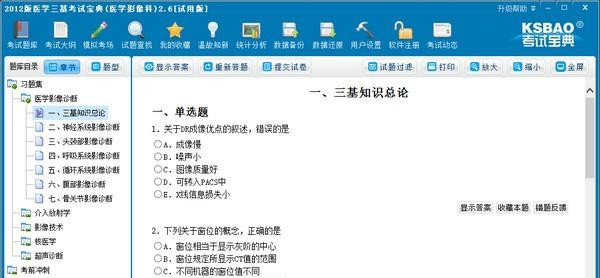 医学三基考试宝典(医学影像科)是一款医学三基考试试题辅导软件,医学三基考试宝典(医学影像科)题库设计紧扣最新医学三基医学影像科考试教材,适用于医学影像科考试。  软件特色 1.软件题库收录的题型紧扣考试大纲,并保持实时更新。 2.设置的错题重做、统计分析、查找试题、模拟考试等多个功能模块,全方位满足考生的学习需要。 3.单选题、多选题、判断题、填空题,题型多样,符合医学三基医学影像科考试题型,有利于为考试做好充分准备。 功能介绍 1.标准化试卷:软件将所有医学三基医学影像科考试题、答案选项以真实试卷形式集中在同一界面上,选择答案只需鼠标点击即可,不用反复点击上一题、下一题等操作,简化答题程序,提高答题效率。 2.精选试题:医学三基医学影像科考试试题经专业人员精心选择,剔除重复试题,针对性强,节约复习时间。 3.智能阅卷:答题完毕后,软件自动批阅并显示得分、用红色标记答错试题。 4.错题重做:可以将错题重新调出重做,反复刺激,加深印象,保证做题正确率。 5.试题过滤:可以进行选择性测试:练习新题、错题重做、收藏试题,也可以对题型进行过滤,如只练习A型题。 6.解题思路:针对医学三基医学影像科考试每一道试题提供专业级的解题方法、答题技巧、考试要点精解,让您掌握各类答题技巧。 7.打印功能:可以打印试题、考试大纲等资料。 8.章节练习:按医学三基医学影像科考试的科目、章节进行分类练习,针对性强。覆盖了应考的全部知识点。 9.模拟考试:无限次自动智能组卷,每次出题决不重复,使您在较短时间内将所有试题做完,进行全面复习。 10.温故知新:软件自动记录下您的每次答题数量、答题速度、正确率等信息,您可以重现当时的答题情景,达到反复练习的目的。 11.统计分析:软件以列表、走势图显示得分、正确率,可以按医学三基医学影像科考试科目分类显示,使您可以针对薄弱环节进行加强训练。 12.试题查找:就医学三基医学影像科考试某个知识点进行查找,将包含此知识点的所有试题进行汇总出题。 13.收藏试题:将重要的试题标记为收藏试题,针对收藏试题可以进行反复练习。 14.数据备份、还原:安全、快捷的保存您的答题记录、收藏试题等用户个性信息。 15.个性设置:显示字号自由放大缩小功能,使您的阅读更轻松;您可以将答题背景设置为您喜欢的颜色,减少阅读疲劳。 16.分数设置:您可以针对医学三基医学影像科考试每种题型设置其分值。 月边疏影,梦到消魂处。结子欲黄时,又须作、廉纤细雨。孤芳一世,供断有情愁,消瘦损,东阳也,试问花知否?试拂铁衣如雪色,聊持宝剑动星文。2012版医学三基考试宝典(医学影像科),2012版医学三基考试宝典(医学影像科)下载,考试系统,教育软件7、What is done cannot be undone. |