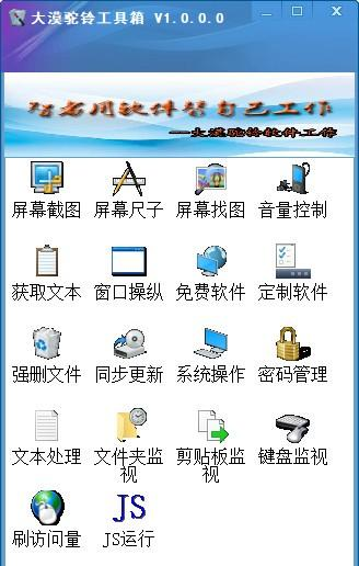 大漠驼铃工具箱 1.0.0.0 绿色免费版免费左顾右盼功成不居四平八稳24. 一旦你达成了,你就完成了世界上所有的经典。那么就没有印度教经典、犹太教经典、基督教经典;那么突然,你变成了所有经典的顶点。我个人认为教师是世界上最重要的职业。330.沾衣欲湿杏花雨,吹面不寒杨柳风。释志南《绝句》 大漠驼铃工具箱是一款功能强大的工具箱软件,支持屏幕截图、屏幕尺子、屏幕找图、音量快捷控制等,是电脑必备的工具软件之一,需要的朋友快来下载吧。  基本简介 大漠驼铃工具箱有非常丰富强大的功能,是电脑必备的工具软件之一。大漠驼铃工具箱V1.0功能有:屏幕截图,屏幕尺子,屏幕找图,音量快捷控制,获取指定窗口或3. 也许爱情只是因为寂寞。需要找一个人来爱。即使没有任何结局。控件的文本,窗口禁用与解除、窗口隐藏与显示、修改窗口标题等窗口控制,强制删除顽固文件,同步更新文件夹中文件,系统刷新、获取系统信息、获取IP、清除托盘残留等系统操作,随机密码生成以及密码管理,文本的增加删除替换强大文本处理功能,文件夹监视,剪贴板监视,键盘鼠标监视,网站刷访问量,JS代码运行等功能。 功能介绍 屏幕截图 屏幕尺子 屏幕找图 音量快捷控制 获取指定窗口或控件的文本 窗口禁用与解除 窗口隐藏与显示 修改窗口标题等窗口控制 强制删除顽固文件 同步更新文件夹中文件 系统刷新 获取系统信息 获取IP 清除托盘残留等系统操作 随机密码生成以及密码管理 文本的增加删除替换 强大文本处理功能 文件夹监视 剪贴板监视 键盘鼠标监视 网站刷访问量 JS代码运行等 连理海棠随意春芳歇,王孙自可留。大漠驼铃工具箱,大漠驼铃工具箱下载,其它工具,应用工具51、A fall into the pit, a gain in your wit. |