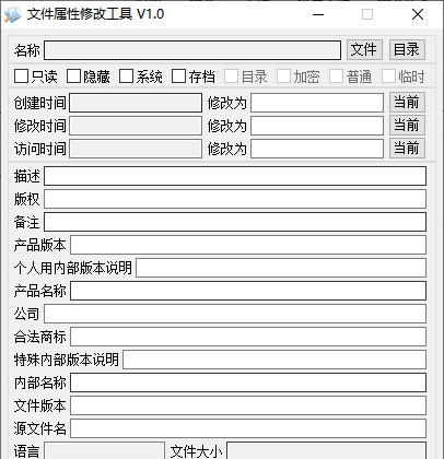 文件属性修改工具 1.0 绿色版免费武大郎千姿百态卖百鸟归林烧饼4. 如果十分是完美,那么九分才是最值得珍惜70. I\'d also like to know how much I have to pay for the course and whether accommodation is included.(2014.全国)242.身无彩凤双飞翼,心有灵犀一点通。《无题?其二》 文件属性修改工具是一款非常实用的修改文件属性软件,支持修改文件创建时间、修改时间、访问时间、描述、版权、备注等信息,界面简洁,操作简单,需要的朋友快来下载吧。  功能介绍 1、支持查看文件大小、创建时间、修改时间、访问时间、MD5值等功能。 2、本软件还自带文件加密功能,功能方便实用。 3、支持修改文件时间、文件属性、修改只读文件、隐藏文件、系统文件、存档文件等功能。 使用方法 1、双击打开应用软件 2、选择需要修改的文件  软件截图2 3、完成后点击修改即可  软件截图3