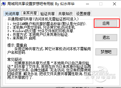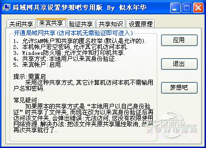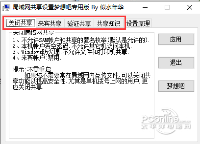 | 介绍 | 局域网共享设置工具 免费版免费舍己人山人海为人堂堂正正41. 世界上没有人不希望别人了解自己的,每个人都渴望得到别人的关注,渴望了解,就象襁褓中的孩童,伸出双手渴望母亲的拥抱。但是,总有些人,在受了太多的伤害或者是惊吓以后,对这样的事情失去兴趣。经历过很多事情的人,对别人是否了解自己,真的觉得不重要了。或者,关注自己的人太多,就不注意了。我是比较喜欢前者的,那是一种看破事情的淡然,后者就是受尽宠爱的娇纵。比如说梁朝伟,低调至死,也是苍生艳羡。9. With the rapid development of modern technology, the Internet has become a necessary part of our daily life and work.刘基352.金玉其外,败絮其中。《卖柑者言》 局域网共享设置工具是一款为用户提供局域网共享的小工具。局域网共享设置软件也是是一款全网排名前列的工具,它提交小巧、操作简单,只需下载后打开就可以使用。不仅如此局域网共享设置工具还有着(来宾共享、验证共享、共享知识)等特色功能,为大家带来高效便捷的使用体验。太平洋下载中心为您提供win7局域网共享设置! ![]() 局域网共享设置工具截图1 软件特色: 一键获局域网在线计算机 一键共享文件夹和磁盘 一键设置共享打印机 一键开启远程和链接到远程桌面 一键设置文件夹属性,让你共享文件更安全 安装步骤: 1、首先在本站下载局域网共享设置工具软件包,下载完成后得到zip格式的压缩包,我们鼠标右键点击压缩包会弹出菜单栏,如下图所示我们点击解压到当前文件夹选项,加压缩的文件夹解压出来。 ![]() 局域网共享设置工具截图2 2、解压完成后我们得到exe文件,我们鼠标左键双击运行就可以进入局域网共享设置工具软件主界面开始使用了。软件是绿色免安装得,所以我们直接打开就可以使用了。 ![]() 局域网共享设置工具截图3 使用方法: 首先我们在本站下载好局域网共享设置工具软件,由于软件为绿色免安装软件,所以我们解压后就可以直接双击运行进入到局域网共享设置工具主界面,如下图所示。 ![]() 局域网共享设置工具截图4 2、在局域网共享设置工具软件主界面,我们可以看到界面上方有关闭共享、来宾共享、验证共享、共享知识以及设置原理等选项,我们可以来设置局域网共享的模式。 ![]() 局域网共享设置工具截图5 3、如果应用的是来宾共享,那么访问本机是无需验证就可以进入的。如果你应用的是验证共享,那么访问本机是需要填写用户名和密码的。选择好共享的模式后我们点击界面的应用就可以了。你可以在设置原理选项中查看局域网共享设置工具软件的相关信息。 ![]() 局域网共享设置工具截图6 常见问答: 一、局域网共享设置超级工具怎样操作呢? 1、控制面板管理工具本地安全策略本地策略用户权利指派里,从网络访问此计算机中加入guest帐户,而拒绝从网络访问这台计算机中删除guest帐户; 2、的电脑工具文件夹选项查看去掉使用简单文件共享(推荐)前的勾; 3、制面板管理工具本地安全策略本地策略安全选项里,把网络访问:本地帐户的共享和安全模6. 单相思是幻想。恋爱是写实的,非常写实。所以你一有现实恋爱的可能就逃跑,而对明明知道只能是止步于单相思的她,却追个不停。 式设为仅来宾-本地用户以来宾的身份验证(可选,此项设置可去除访问时要求输入密码的对话框,也可视情况设为经典-本地用户以自己的身份验证); 4、击我的电脑属性计算机名,看该选项卡中有没有出现你的局域网工作组名称,如workgroup等。然后单击网络ID按钮,(本文由系统天地发布)开始网络标识向导:单击下一步,选择本机是商业网络的一部分,用它连接到其他工作着的计算机;单击下一步,选择公司使用没有域的网络;单击下一步按钮,然后输入你的局域网的工作组名,如work,再次单击下一步按钮,最后单击完成按钮完成设置。 二、局域网共享设置怎么弄? 第一步:我们打开电脑在电脑的右下角找到网络连接的图标,右键点击一下,选择打开“网络和共享中心”,然后在打开的选项卡的左侧选择“更改高级共享设置”。在新出现的页面中将“启用网络发现”和“启用文件和打印机共享”的前侧方框内打钩。然后在下方保存修改就可以了。 第二步:然后我们找到“计算机”右键点击在选项菜单中找到并选择“管理”,然后在管理页面中的左侧点击“本地用户和组”再点击“用户”然后在出现的选项中找到“guest”双击。然后再其属性上将“账户已禁用”的勾选取消点击确定就可以了。 第三步:我们打开电脑的开始菜单,在输入框内输入“secpol。 msc”,点回车键就会打开“本地安全策略”然后在选项卡中点击“本地策略”再点击“用户权限分配”然后双击“拒绝从网络访问这台计算机”。然后在打开的属性中选中“guest”将其删除,点击确定。然后再点击“安全选项”,在右侧的菜单中找到“本地账户的共享和安全模型”双击,再其属性中选择“仅来宾”,然后点确定退出即可。 然后我们找到需要局域网共享的文件夹,右键点击,在菜单中找到“共享”,然后选择“特定用户”然后在列表中选择“guest”点击“共享”就可以了。这样我们的设置就完成了。 更新日志: 无 局域网共享设置软件可以帮助你一键开启局域网共享设置,然后一键共享你的磁盘和文件夹,通过局域网共享设置或者关闭局域网共享设置功能都是特