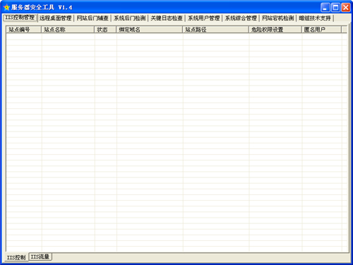 1、IIS控制管理:IIS控制目前主要是新建站点、控制功能和危险权限检测功能,IIS流量可快速查看站点流量统计情况。