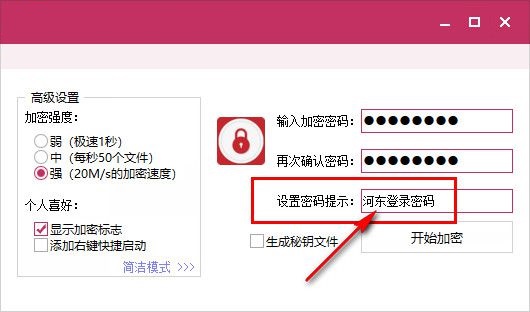 6、如果你担心忘记密码,可以设置文字提示,例如设置河东登录密码,也可以设置游戏登录密码