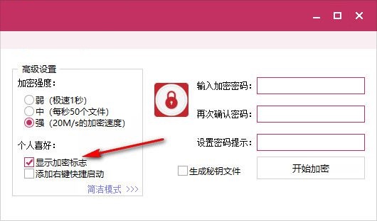4、这里有一个加密标志,可以勾选,这样加密以后会出现特殊的标志
