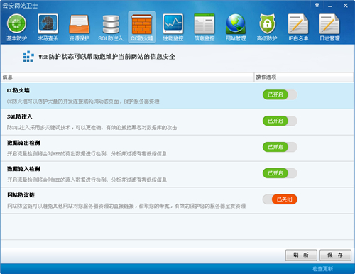云安网站卫士官方版是一款功能强大的网站安全软件,能够防挂马、SQL防注入、网页防篡改、防盗链的网站安全管理工具,云安网站卫士官方版可以实时监控网站,可自设IP黑白名单,查杀木马,为您的网站时刻营造出一个安全监控的环境。