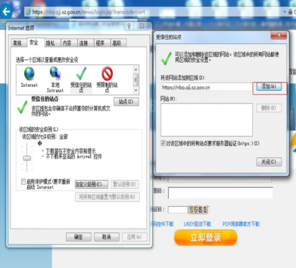 1. 添加信任站点