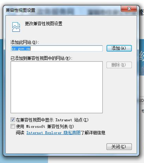 第三步:输入公积金网址,再点击添加,最后点击关闭,如下图所示: