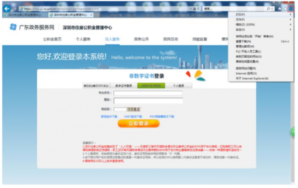 第一步:打开 IE11 浏览器,进入公积金在线办理入口。