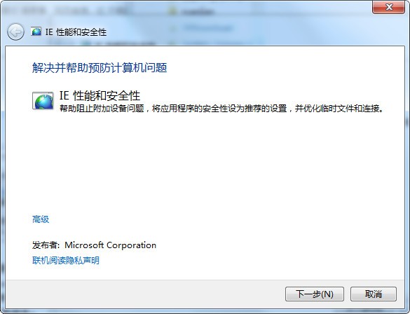 自动诊断和修复用问题可能会降低 Internet Explorer 的安全性或者导致 Internet Explorer 响应缓慢或崩溃