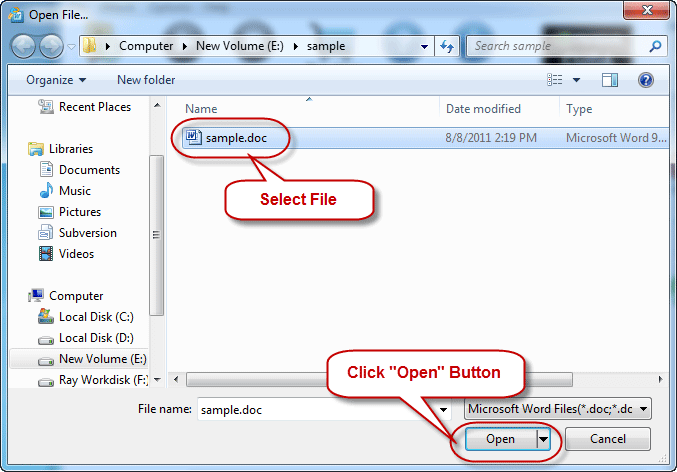选择受密码保护的MS Word文件。