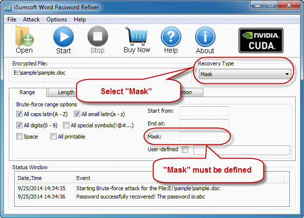 mask:如果您可以部分记住密码,最好使用此类型恢复忘记的单词密码。如果您选择掩码类型,您应该提供一些您可以记住的密码符号。如果使用掩码类型,则必须定义密码掩码。这样可以缩短密码恢复时间。