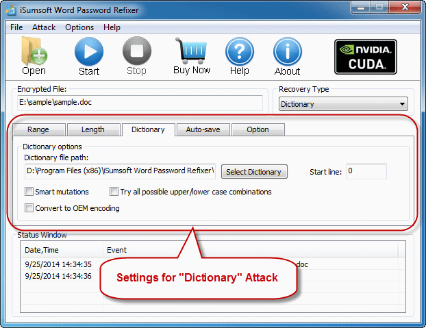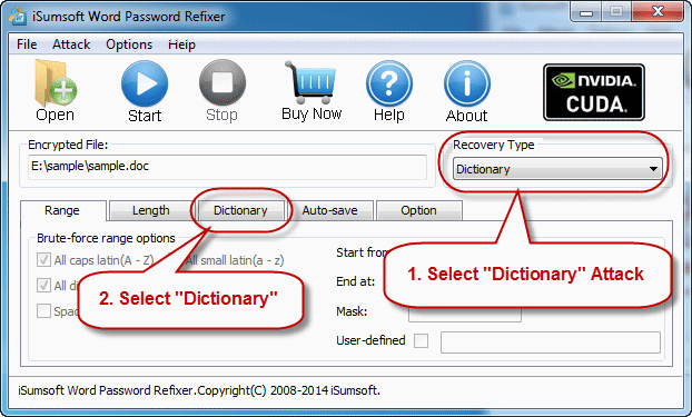 字典:通过尝试内置字典中的密码组合来恢复丢失的单词密码。您还可以使用各种语言创建自己的词典。最好是使用常规单词或短语作为密码。