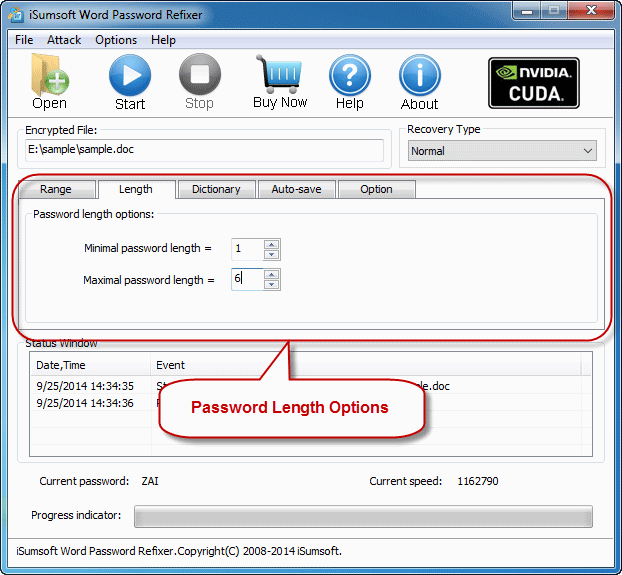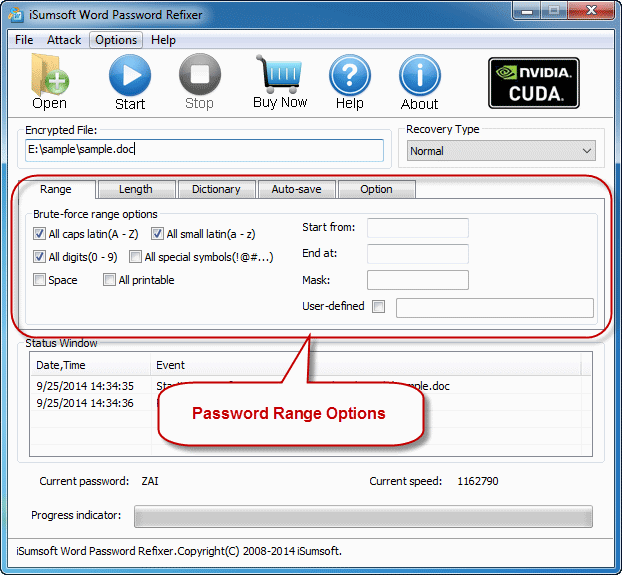 范围:设置范围选项可以确保加密MS Word文件的丢失/忘记密码会缩短恢复时间并提高解密成功率。