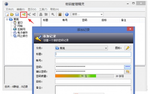 ??2、这时,需要设定一个密码,今后打开软件查看你的其它密码时都需要先输入这个密码进行验证,这是出于安全的考虑,防止别人得到你的密码。设定密码后,就可以在软件中添加你的密码记录了,比如添加QQ密码、微信密码等等各种密码