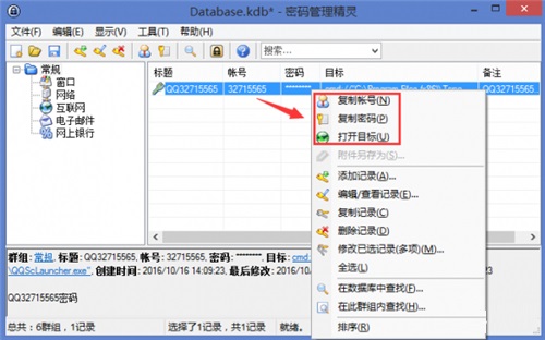 ??3、添加了密码记录之后,不单可以将帐号密码保存起来防止忘记,而且也可以方便使用,如只需要记录上点击右键,然后就可以复制帐号密码。相比保存密码,这项功能会极大的方便日常操作