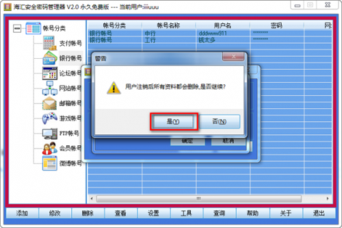 1、海汇软件根据目前电脑用户帐号多密码多的现实情况,特意编写了这软件。