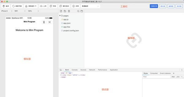 | 介绍 | 字节跳动开发者工具 3.2.7.1 官方版免费出水扬帆远航芙百发百中蓉2. 我所挽留不住的,只能任由永恒取回。而我,我是那因为一度拥有贝壳而聆听了整个海潮音的小孩。an opportunity to do sth 做某事的机会文天祥324.人生自古谁无死?留取丹心照汗青。《过零丁洋》 字节跳动开发者工具是专为小程序打造的开发者工具,字节跳动开发者工具能够帮助用户开发头条小程序,为用户提供了调试工具,代码编辑,代码检测等工具。 ![]() 使用方法 新建项目 当满足: 已拥有一个字节跳动小程序的 AppID; 所登录的账号是该 AppID 所对应小程序的开发者。 可以选择窗口中央的「创建一个头条小程序」,或点击右下角的「新建」按钮,新建工程。 ![]() 软件截图2 选择项目类型:小程序或小游戏(一旦选择无法更改)。 选择一个空目录,作为工程目录。当选择空目录时,可以选择是否在该目录下生成一个简单的项目。 appId 需要在公众平台管理后台获取。 ![]() 软件截图3 主界面 图中所示分别为:工具栏、模拟器、编辑器、调试器四大部分。 ![]() 软件截图4 窗口菜单栏 小程序:可以查看开发者工具版本号 项目:支持打开「开发者工具」本身的调试器 编辑:可以查看编辑相关的操作和快捷键 工具栏 编译:编译当前的小程序项目 刷新页面:刷新当前页面 清除缓存:可以清除文件缓存、数据缓存、登录状态和授权数据 上传:填入 app 版本号及更新日志,上传小程序应用内容到服务器 预览:生成二维码,预览已上传版本 详情:展示当前小程序的 appid、user_id、本地目录、文件系统、基础版本与编译版本,并可以设置校验 TLS 版本以及 HTTPS 证书 点击「模拟器」、「编辑器」、「调试器」三个按钮可以隐藏/显示相应的模块,界面中至少有一个模块被显示。 ![]() 软件截图5 模拟器 模拟器模拟头条小程序在客户端真实的逻辑表现,对于绝大部分的 API 均能够在模拟器上呈现出正确的状态。开发者可以选择不同的设备,调试小程序在不同尺寸机型上的适配问题。 ![]() 软件截图6 编辑器 编辑器模块内可以对当前项目进行代码编写和文件的添加、删除以及重命名等基本操作。 文件格式:因 iOS 下仅支持 UTF8 编码格式,最新版本的开发者工具会在上传代码时候对代码文件做一次编码格式校验。 文件支持:工具目前提供了 5 种文件的编辑:ttml、ttss、js、json 以及图片文件的预览。 文件操作:可以通过在目录树上右键,选择新建 Page,将自动生成页面所需要的 ttml、ttss、js、json,及在 app.json 的 pages 字段,添加需要新建的页面的路径,将会自动生成该页面所需要的文件,两种方式新建页面。 目录树:可以查看当前项目的目录结构。 调试器 调试工具分为 6 大功能模块:Bxml、Console、Sources、Network、Application、Performance 自定义编译条件 编译条件会读取 project.config.json 中的 condition 字段下的相关配置,方便导入编译条件。 ![]() 软件截图7 点击工具栏的普通编译处,在下拉列表中,点击添加编译模式,会弹出填写编译条件窗口,添加自己的定制化的编译条件。 ![]() 软件截图8 在弹出的窗口中,添加模式名称,启动页面,启动参数以及进入场景几个字段,点击确认,生成新的编译条件。 ![]() 软件截图9 上传提审 点击工具栏的"上传"按钮,填写版本号(版本号不能重复,需在上一个版本号上加 1), 填写更新日志,点击确认上传至开发者平台。 ![]() 软件截图10 上传完成后,进入开发者平台=》发布页面进行提审 Bxml panel Bxml panel 用于帮助开发者开发 ttml 转化后的界面。在这里可以看到真实的页面结构以及结构对应的 ttss 属性,同时可以通过修改对应 ttss 属性,在模拟器中实时看到修改的情况(仅为实时预览,无法保存到文件)。通过调试模块左上角的选择器,还可以快速定位页面中组件对应的 ttml 代码。 Console panel 开发者可以在此调试代码。 So22. 失恋算个啥?轻轻的,你走吧,千万别后悔,因为只要你一挥手,就会发现,已经有那等不及的意中人,正偷偷摸摸地拉俺的手!urces panel Sources panel 用于显示当前项目的脚本文件,同浏览器开发不同,小程序框架会对脚本文件进行编译的工作,所以在 Sources panel 中开发者看到的文件是经过处理之后的脚本文件,开发者的代码都会被包裹在 define 函数中,并且对于 Page 代码,在尾部会有 require 的主动调用。 Network panel Network Panel 用于观察和显示 request 和 socket 的请求情况。 AppData panel AppData panel 用于展示以及修改当前 page 的 data 属性 Storage panel 可以查看 Storage 存储情况。 常见问题 解决字节跳动开发者工具安装无法打开问题 下载字节跳动开发者工具 下载之后 点击安装 默认安装到 C:\\Users\\你的电脑名称\\AppData\\Local\\Programs\\bytedanceide 目录下 但是点击打开 弹窗报红色错误如下图: ![]() 软件截图11 解决方法: C:\\Users\\你的电脑名称\\AppData\\Roaming 目录下新建 bytedanceide 文件夹 然后 bytedanceide 文件夹下面新建 tmadevtool 文件夹 然后 tmadevtool 文件夹下面新建一个名为 projectInfo 的无后缀的文件 就这么轻松解决啦 重新打开字节跳动开发者工具 一切正常!!! 更新日志 3.1.6(2021-09-18) 新增:新增支持 chooseLocation API 模拟 优化:优化 Trace 工具使用体验 优化:优化开发者工具启动加载页面 优化:优化完善开发者工具代码快速补全 修复:修复 IDE 模拟定位设置无效的问题 修复:修复第三方小程序白名单域名获取异常的问题 修