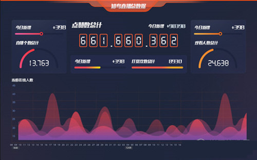 显示正在直播的主播名称、 在线观众数、 打赏的礼物数和点赞数