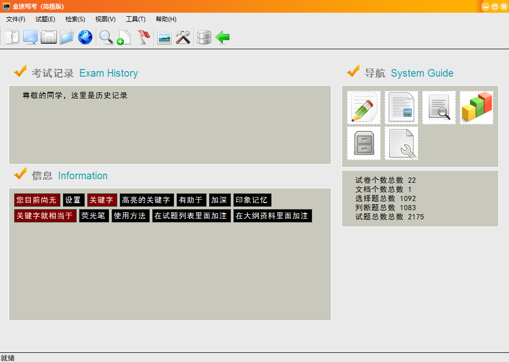1、金速驾考有22个试卷、1个文档、1092道选择题、1083道判断题,让你可以加深试题的印象