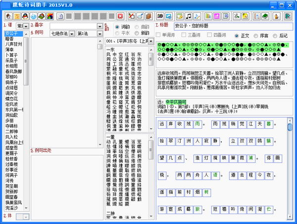 鹰蛇诗词助手官方版是一款内容丰富全面实用的写诗词工具软件,鹰蛇诗词助手官方版软件内含大量丰富的知名诗词,能够为用户提供写诗参考,用户还可以通过鹰蛇诗词助手进行搜索关键词、同谱查询、自定义谱、分数图形等操作。十分方便!