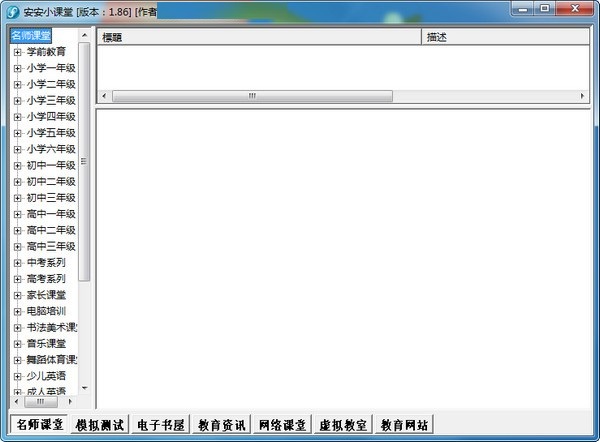 安安小课堂官方版是一个中小学课程辅导软件,本软件包括了从小学三年级到高考的全部视频教学,还包括课间操,是一个家长辅导孩子的不错的软件,但有一点不足的是里面的视频全部经过压缩视频效果不太理想,中学生各科课程辅导软件,包括语文、数学、英语、物理、化学等课程的特级教师辅导,可用于课前预习和课后复习,是中小学生最好的家庭教师。