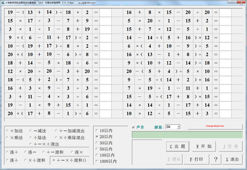 2、类型确定后每点击“出题”按钮就会随机出一套口算练习。