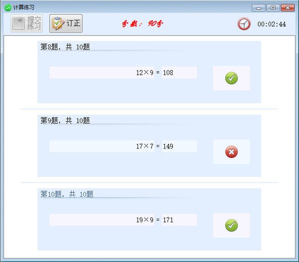 有错题可点击“订正”按钮,进行订正;订正后,再点击“提交练习”,软件会再自动评改。