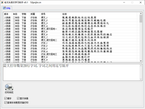 老文头语文学习助手官方版是一款功能实用的学习软件,老文头语文学习助手官方版能够帮助小学初中孩子学习写字、认字,支持将文字诗词进行打印成字帖,让孩子进行有效的语文和写字的学习,老文头语文学习助手官方版支持显示拼音,支持单词,词语,成语。