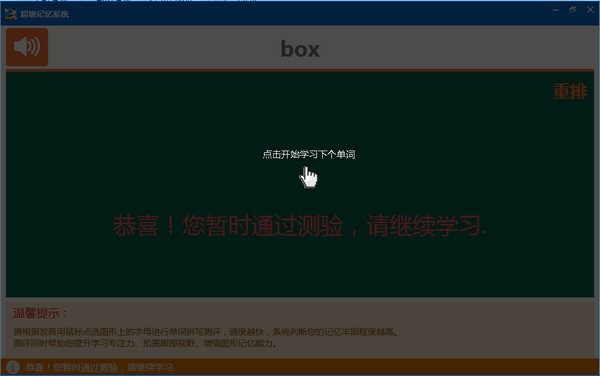 一个单词在学习时,记忆引擎会进行记忆程度计算分析,自动计算出这个单词在“未来”的最佳复习时间,到达最佳复习时间的那天,系统会让你再次复习巩固记忆,这时你只需正确判断你的记忆程度即可,系统会自动帮你调整记忆指数,这次就是你真实的记忆曲线了,在以后的复习中,只要真实评分,相信经过几次科学的复习,这个单词可能半年以后才需要你复习,这样你不仅彻底牢记了单词,而且学习会越来越轻松。
