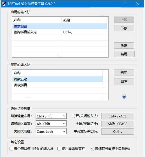 TSFTool(输入法设置工具) 0.9.2.2 中文绿色版免费画万里无一叶扁舟云龙点睛9. 岁月,是一首诗,一首蕴含丰富哲理的诗,岁月是一峰骆驼,驮着无数人的梦想。我容易相处并且喜欢交朋友。357.青山依旧在,几度夕阳红。 TSFTool(输入法设置工具)是 IMETool 的继承者,是运行在 Windows10/Windows Server 2019 操作系统下的输入法设置工具,支持 TSF 输入法框架,并部分兼容旧的 IMM 输入法框架。  功能介绍 一、关于热键 1. 切换热键修改后立即生效,但只对新打开窗口有效,原有窗口仍是旧的热键有效。 2. 切换热键可以单独选择左/右控制键,但是重启后会变回左右双键同时有效,这是 Windows 的设置功能混乱造成的,重载键盘布局即可重新生效。可以点击设置工具右下角的“刷新”按钮,也可以由命令行执行 tsftool /r 或 tsftool /refresh 重载键盘布局。 3. TSF 类型的输入法和旧的IMM类型输入法能使用的热键范围有所不同。TSF 输入法的控制键不分左右,虽然 Windows10 的相关设置界面里显示 Alt 键只能用左 Alt,实际右 Alt 键也有效,故在命令行中指定 TSF 输入法热键时不再加 left 前缀,如:alt、ctrl+alt 等。另外,TSF输入法不能使用 Windows 键和 APPS 键。 4. IMM输入法的控制键可单独区分左右,但只能使用 ctrl、shift、ctrl+shift这三组控制键组合,如:ctrl、left_ctrl、right_ctrl+shift 等等。打开/关闭输入法、全角/半角切换和中英文标点切换的热键定义范围和 IMM 输入法一致。Windows10 目前不再定义全局的全半角切换和中英文标点切换热键,但有时候也会有效,所以暂时保留了这两组切换热键设置。 5. 因为 / 被定义为命令行参数的前导符,从命令行指定热键时使用其上档键 来代替 /,小键盘的 / 用 num 代替。 6. 输入法热键的重码检查暂时只在当前当前语27. 缘起缘灭,缘浓缘淡,不是我们能够控制的。我们能做到的,是在因缘际会的时侯好好的珍惜那短暂的时光。言下进行,其它语言自行注意即可。功能待以后改进。但是三组通用切换热键允许不同语言重码,互不影响。 7. 在 Windows10 的热键设置中对“~”键的定义有误,无法生效,为保持兼容性本工具也保留了这个定义;另Windows10 热键设置中定义的“抑音符”实际为小键盘的数字0。 二、关于键盘布局 1. Windows10 从 1903 版本开始,已经无法正常将中文简体-美式键盘显示在输入法列表中了(实际是存在并启用的)。为了方便一些老用户,我在程序的输入法列表里硬加了一个“美式键盘”,以蓝色显示,可以正常使用。但是我发现,当切换到美式键盘后,是无法用打开/关闭输入法的切换热键“Ctrl+空格”切换到其它输入法的,只有改用切换键盘布局热键“Ctrl+Shift”或徽标键+空格键。我个人建议是禁用美式键盘,然后把最常用的输入法设置初始状态为“英文”,再用“Ctrl+空格”就可以正常切换了。 2. 暂时只支持 0409 这一种英文键盘布局。 3. 因为某些原因,在对美式键盘进行启用、禁用操作时,刷新需要 3~4 秒,注意操作不要太快。 三、其它 1. 所有设置修改后立即生效,没有设计“确定”、“应用”这类功能。 2. 本工具支持 Windows10 32/64 位版本和 Windows Server 2019,32 位版本程序在 64 位操作系统下运行正常。Windows7/8 等以前的操作系统的设置实际差异较大,不再支持。 3. 如果安装了多种语言的输入法,可以从底部的已安装语言列表中切换进行设置。 4. 输入法列表中显示为“粗体” 的条目表示此输入法已设置为默认输入法,可以从列表上点击右键,从弹出菜单里修改相关设置。 5. 每种语言下应至少保留一种输入法或键盘。 6. 如果要添加/删除某些输入法语言,请转到操作系统的设置/时间和语言/语言下进行设置。尝试过直接删除语言,发现容易造成输入法状态混乱,暂时取消了这个功能。 7. 偶尔会出现工具里的输入法列表和实际的输入法列表不太一致的现象,来回调整几次刷新刷新就会正常。主要原因是因为 Windows 在语言选项中的输入法列表和任务栏上的输入法列表是两个不同的配置,有时候条目数量和顺序会不一致,通过输入法工具设置会纠正这个问题。 8. 某些输入法(如小狼毫)在卸载不完全时,TSFTool 的输入法列表里可能会存在空行,以后的版本会想办法解决这个问题( 0.9.2.1 版本已解决)。 离肠未语先断,算犹有凭高望眼。更那堪衰草边天,飞梅弄晚。千山鸟飞绝,万径人踪灭。TSFTool(输入法设置工具),TSFTool(输入法设置工具)下载,拼音输入法,应用工具17、Courtesy costs nothing. |