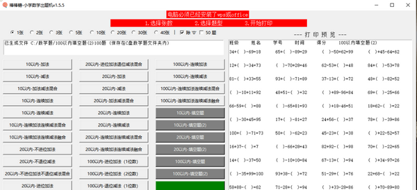 棒棒糖小学数学出题机官方版支持小学一到六年级的数学题目出题打印。