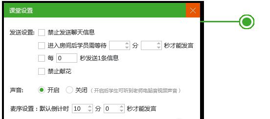 1、课堂设置:教师可通过设置,进行聊天、献花、发言间隔、以及自动踢下麦时间等操作