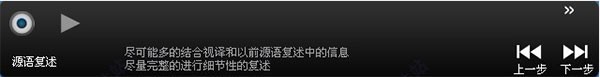通过1~3分钟的源语复述,旨在锻炼短期记忆力和注意力的集中。要旨在于抓主干、抓结构,记忆when/who/where/what,听完之后复述的过程中尽量包括这几个因素,为无笔记交传打下基础。