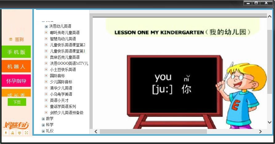 儿歌、故事、拼音、识字、国学、唐诗、英语、数学、科学、礼仪、美术、手工、音乐、舞蹈、幼儿动画片