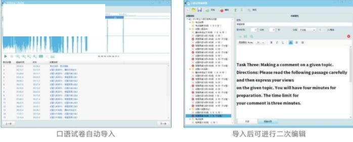1.支持口语试卷自动导入功能,选择口语考试真题录音,系统智能分段并生成口语试卷,生成的试卷可以直接用于口语考试;