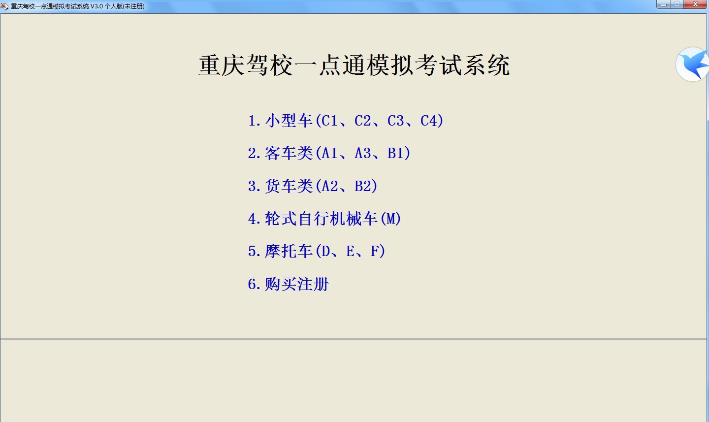 重庆驾校一点通模拟考试系统正式版是款针对重庆地区驾校打造的考试练习工具。重庆驾校一点通模拟考试系统正式版提供顺序练习、随机练习、错题练习、模拟考试等多个练习模式,有效的帮助用户进行考前培训、复习、学习等操作,其中收集了大量的考试宝典、内容涵盖A1客车、C级小型车、A2货车、摩托车等多种模式,习题达到上千道。