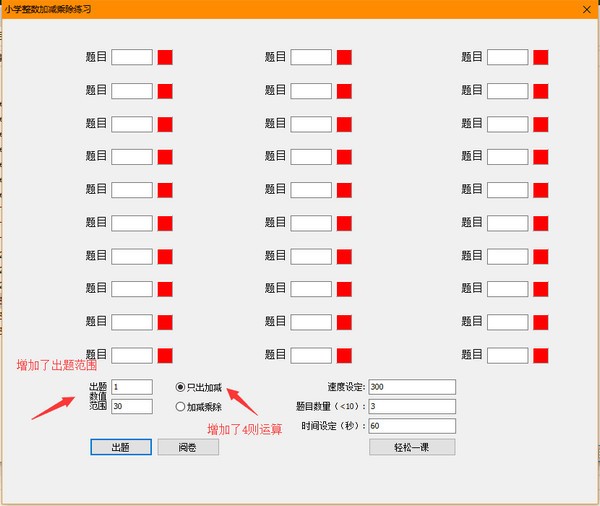 增加了出题范围和四则运算