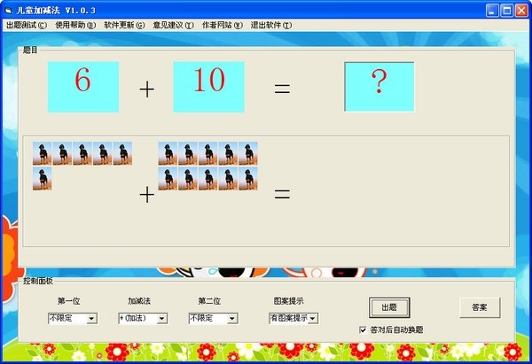 4.软件提供了图案提示功能,便于孩子计算结果;也可以选择“无图案提示”。