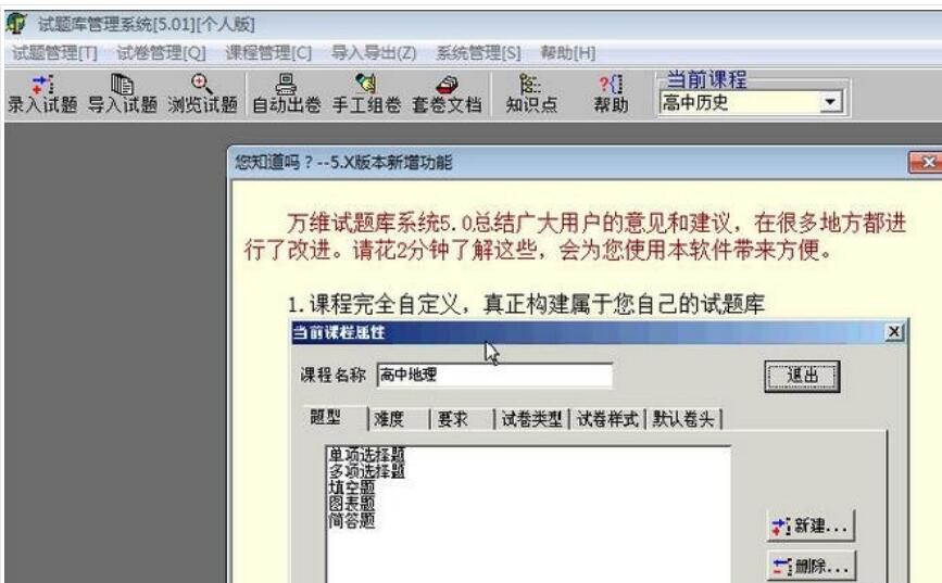 万维试题库管理系统最新版是一款页面简洁友好,功能强劲实用且上手容易的考试软件,万维试题库管理系统最新版拥有很多功能:课程定义;题型支持;试题批量识别导入;题目、选项、答案、分析全面多媒体支持;雷同试题检测;随机组卷和手工组卷流程控制;透明压缩;双向缓冲处理;数据导入导出共享,相当实用。