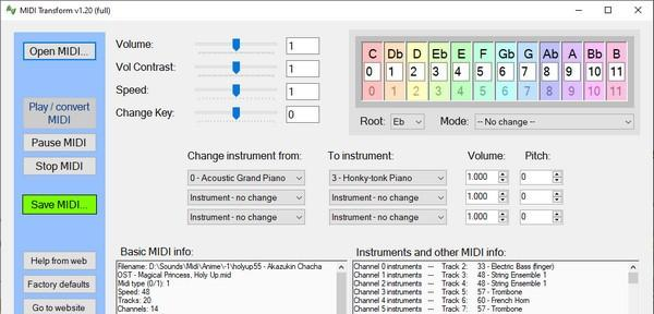 MIDI Transform(乐器数字接口转换器) 1.20 官方版免费力争上百发百中七颠八倒游19. 痛也是怕比较的。把自己所痛的放在人群之中,那么你会在芸芸众生的痛苦之中发现,其实自己所苦苦纠结的疼痛,真的不算什么。我们身心的愉悦,有两重境界:一曰饱,一曰滋润。03学校生活与体育活动334.绿杨烟外晓寒轻,红杏枝头春意闹。宋祁《玉楼春》 MIDI Transform(乐器数字接口转换器)是一种简单易用但功能强大的乐器数字接口转换器,也就是MIDI转换工具。这个应用程序转换器的独特之处在于能够将 MIDI 强制转换为小调、大调、蓝调或中世纪模式,而不管其原始模式或键是什么!  软件特色 调节音量 调整音量的对比度 调整节奏/速度 移调音高/键 更换仪器 将音乐更改为特殊模式 使用方法 1、调整音量和音量对比度 使用显示的滑块更改音量。示例值包括: 0.5=25. 不要再执著于过去的失恋了。执著于过去的失恋,你还将品尝新的失恋或单恋的滋味。一半体积 2=双倍音量(前提是可以更大声) 1=无变化(这是默认值)。 体积对比: 体积对比更有趣一点。有了这个,你可以让安静的更安静,让响亮的声音更大。或者,您可以将音乐强制为一个音量(这对于那些从难以置信的安静到雷鸣般响亮的MIDI非常有用)。使用负数,您甚至可以使安静的声音响亮,并使声音安静!例子包括: 2=更多对比度:声音变得非常响亮。安静变得非常安静。 1=无变化(默认) 0.5=使静音大一点,大音量小一点。 0=强制音乐音量相同。 -1=大音量变柔和,柔和变响! 出于技术原因,您可能需要增加或减少标准音量以抵消此音量对比功能的副作用。例如,如果您将音量对比度设置为0.5,那么所有音量都会收敛到最大音量的一半,因此请确保您还将“正常”音量控制设置为0.5左右以补偿效果。另一方面,如果您将音量对比度设置为2,您可能希望稍微增加“正常”音量以进行补偿。 2、移调音乐并调整速度 正如锡上所说,这些滑块控制音乐的移调和速度。移调以半音为单位(0=无变化),速度是相对于1测量的(0.5=半音速,2=双倍速,1=无变化)。可能的用途包括: 通过使其更快、更慢、更高或更低来改进音乐。 器乐演奏者可以将乐曲放慢,这样他们就可以练习演奏。 歌手可以尝试不同的移调,看看哪种移调最适合他们的音域。 与其他滑动功能一样,您可以在字段中键入任何数字,以获得比滑块允许的更大范围和准确性(包括小数)。 3、乐器变化/音量变化 将一种乐器换成另一种乐器,或更改乐器的音量! 您需要确保选择正确的乐器进行更改,因此如果您想查看MIDI最初使用的乐器,请查看“高级MIDI信息”框。 您可能希望专注于某些乐器而不受其他乐器的干扰(音量可以设置为零,这有效地将它们关闭)。或者,您可能想听听贝多芬的小提琴协奏曲,但用管状钟代替! 如果您要更改音量,请确保您正在调整的乐器位于“更改乐器:”列中,而不是“至乐器:”列中。 v1.20 - 您现在可以调整单个乐器的音高。加载大型 MIDI 文件时的错误修复。 山抹微云,天粘衰草,画角声断谯门。暂停征棹,聊共引离尊。多少蓬莱旧事,空回首,烟霭纷纷。斜阳外,寒鸦万点,流水绕孤村。寥落古行宫,宫花寂寞红。MIDI,Transform(乐器数字接口转换器),MIDI,Transform(乐器数字接口转换器)下载,音频转换,影音工具Just as not every Japanese is hardworking and deferential to superiors (长者、上司), not every Chinese is devoted to family, not every American is ambitious or patriotic - or even unsophisticated. |