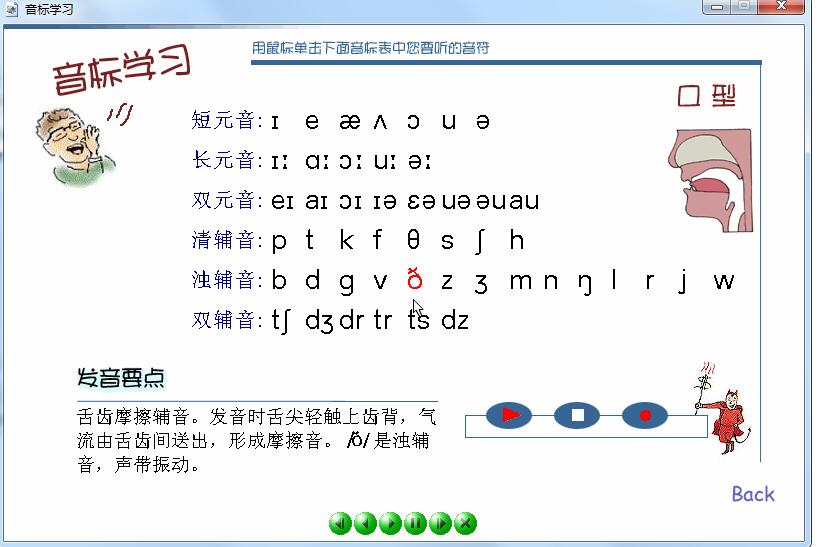 音标学习软件电脑版是一款体积小巧且上手容易的外语音标学习工具,音标学习软件电脑版英语简洁的操作界面,其采用真人发音,详细的口型示范,发音要点详解等,先从简单的音标开始让您掌握最纯正的发音。在一定程度提高英语学习效率。