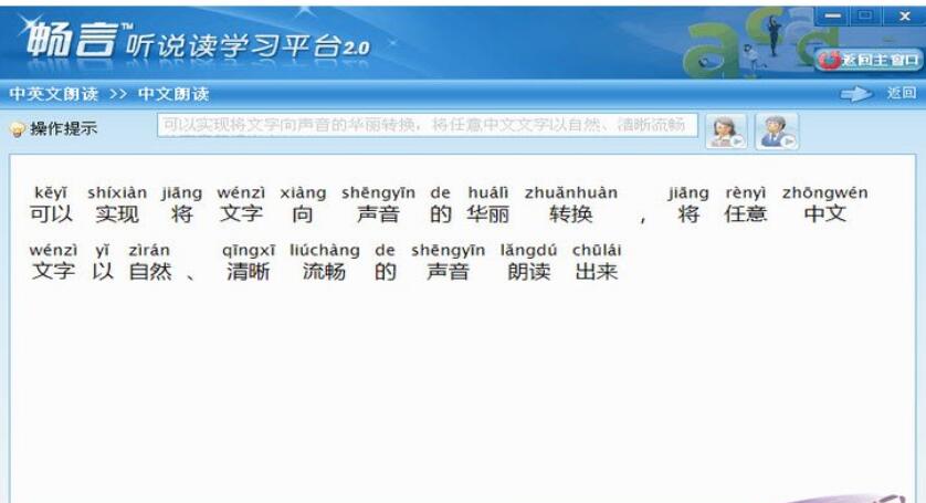 实现文字向声音的华丽转换,将任意中文文字以自然、清晰流畅的声音朗读出来。