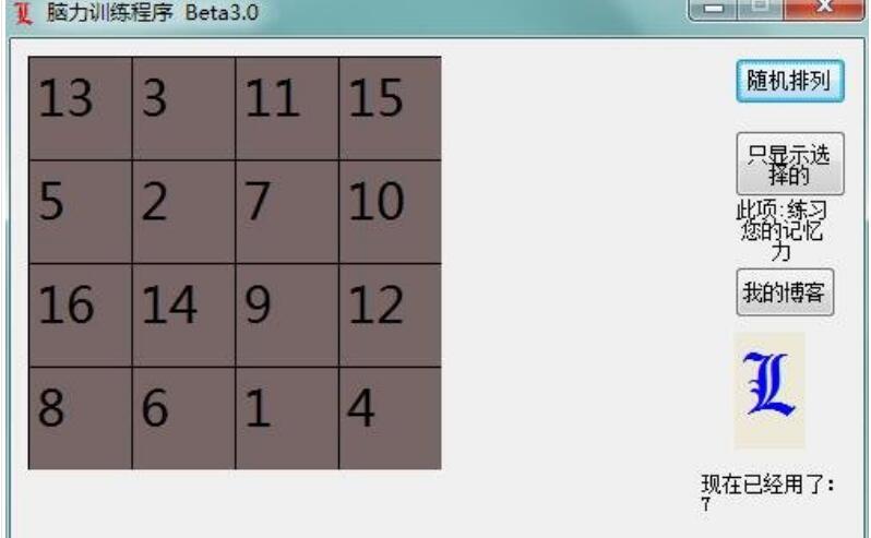 脑力训练程序最新版是一款简洁小巧实用的脑力训练工具,脑力训练程序最新版采用9格、16格、25格、36格四种训练方式,可以通过随机排列来训练你的脑力,从而大大提高记忆力、视觉稳定性、拓展视幅等,广泛适用于中小学生脑力训练。