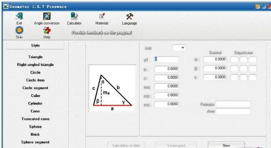 3、只需要输入你工作的形状有关的信息数据和几何形状,如三角形,圆,球体,圆锥体,圆柱体,砖等
