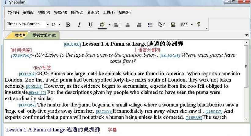 6、任何时候都支持上一句、下一句和回句首的跳转;任何时候都支持用鼠标点击文本的中的时间标签或播放定位条,实现媒体播放的跳转。